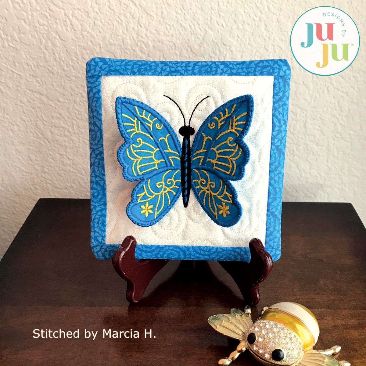 Designs by JuJu recommends the user friendly Embrilliance embroidery editing software to type out fonts in BX format, combine/merge designs, personalize and customize projects and more! Check out their programs Essentials, Enthusiast, StitchArtist , and Thumbnailer to learn more about their other useful, fun and easy features!