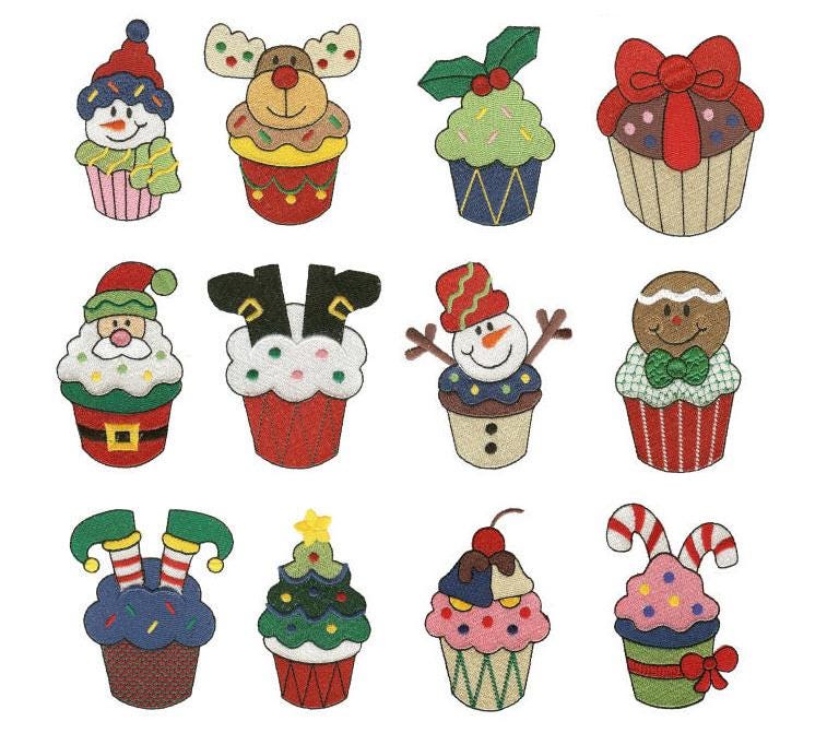 Ā Have a Merry yummy Christmas with these precious Christmas themed cupcakes. This time available in a filled stitch version.