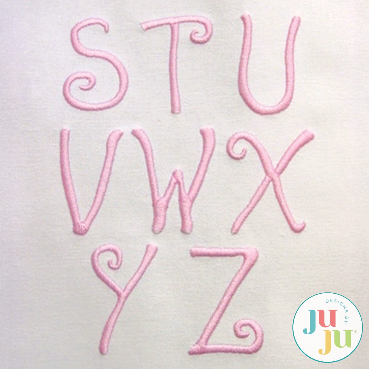 This quirky, playful font has a young look and feel to it and comes with both capital and lower case letters. Capitals are approximately 2" tall and fit perfectly into most border bands on bath towels. Great for projects for tweens and teens girls (flowers and butterfly sold separately). Complements our Abby Alphabet.