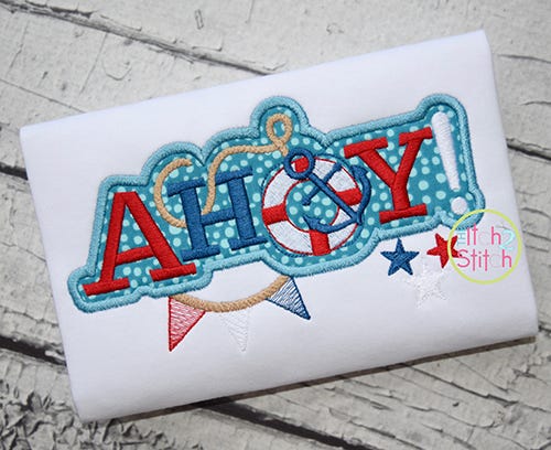 The flags feature a light and airy sketch fill pattern. The largest size has split satin stitch lettering.