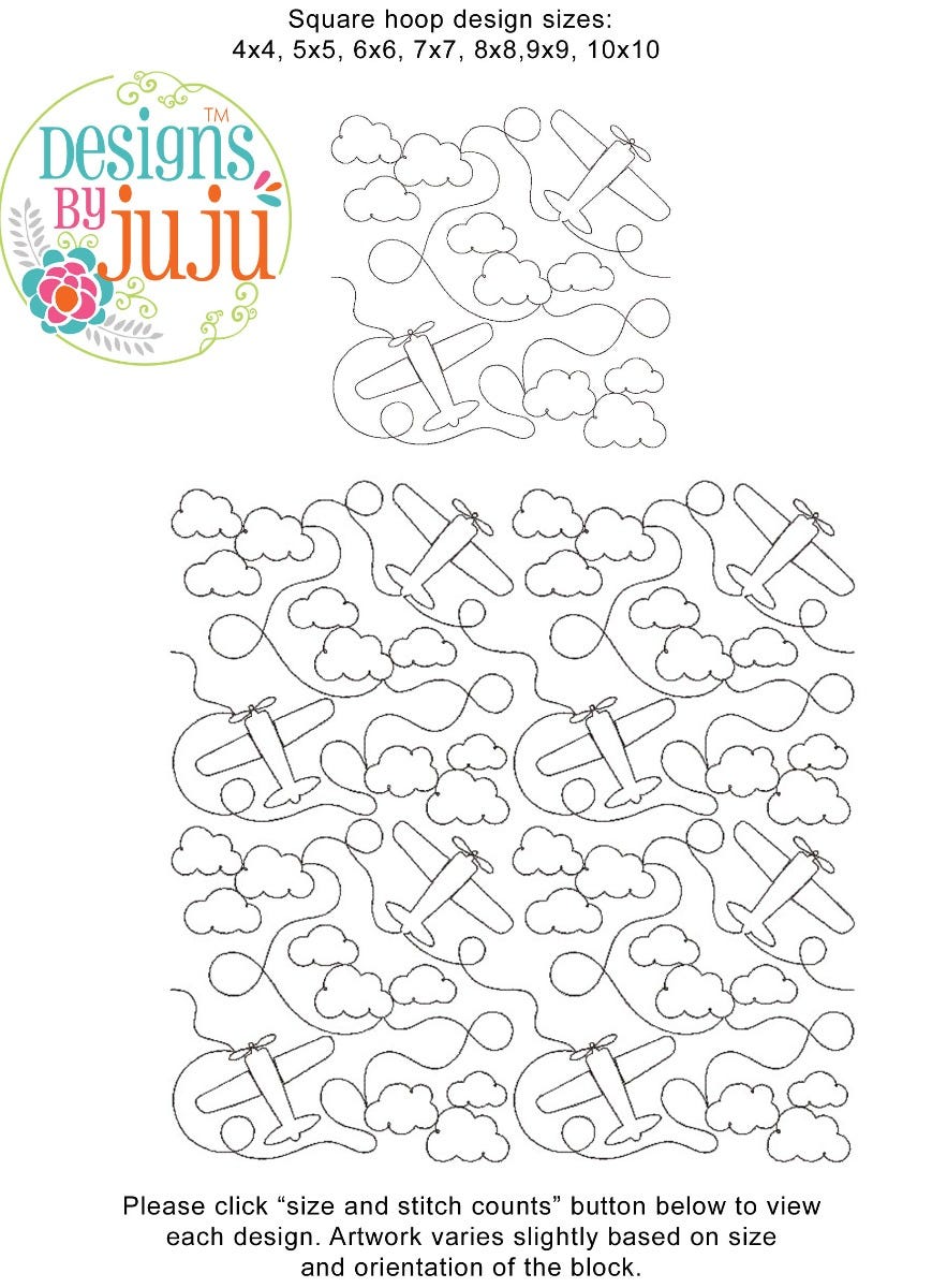 Please note: Both the scale of each pattern and arrangement of the motifs may vary based on the hoop size. Please click the "Size and Stitch Count" button to view the artwork for each size.