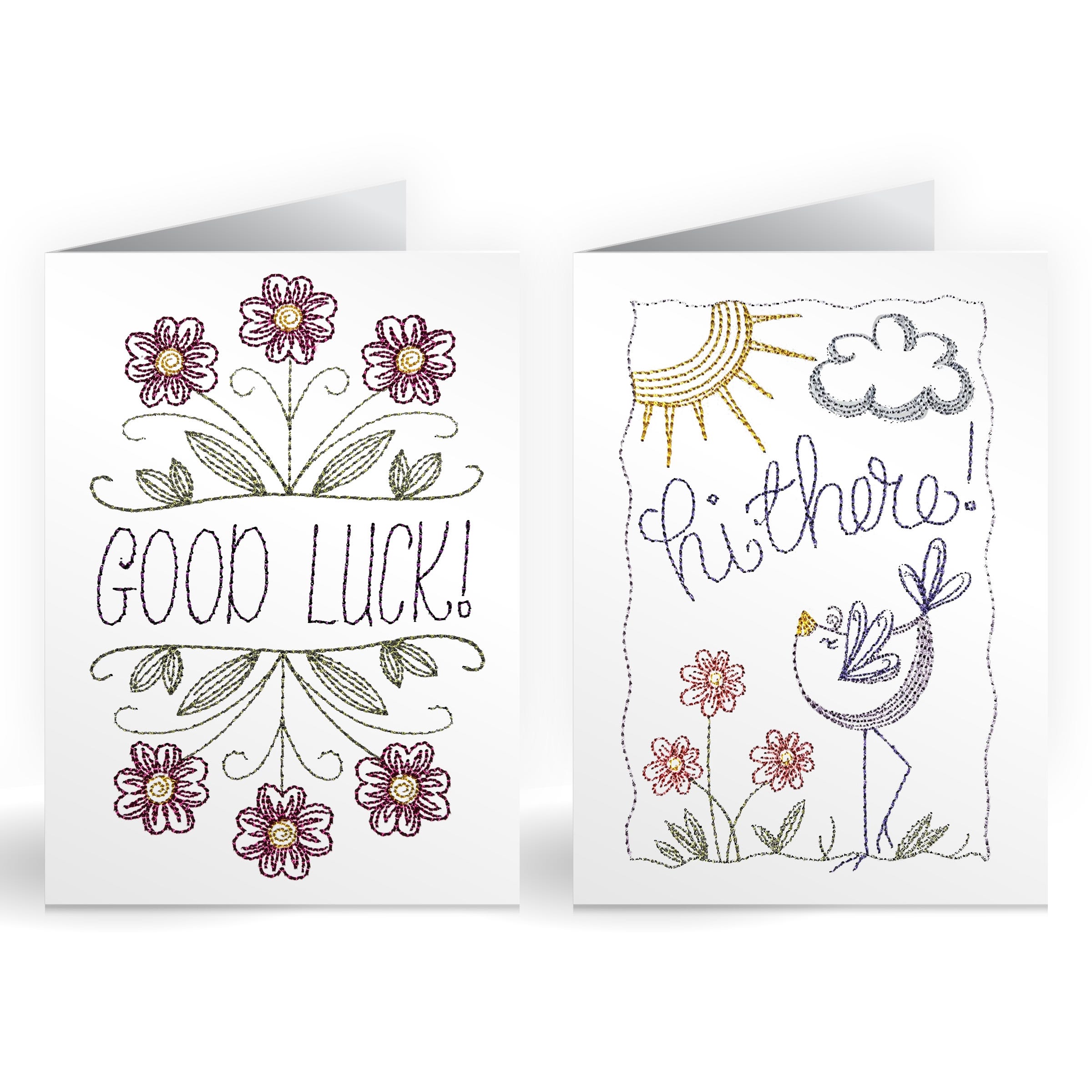 Stitching embroidery onto cardstock is fun and easy! We include a PDF in your download with some tips and tricks on embroidery onto cardstock.
