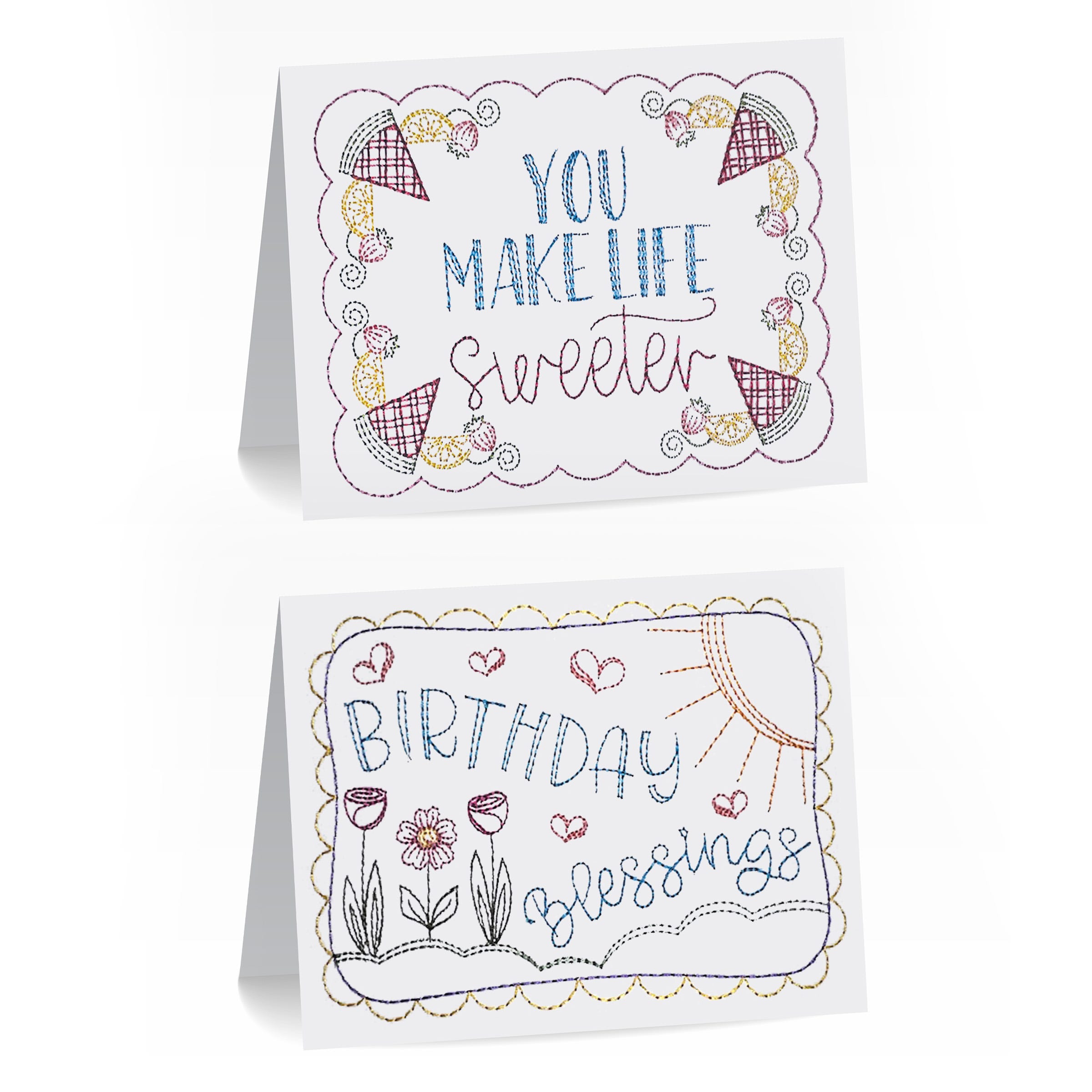 Add a handmade touch to your heartfelt moments!Ā Ā Featuring two beautiful greeting card designs: āYou Make Life Sweeterā and āBirthday Blessings.ā 2 sizes of each design included: 4x6 and 5x7