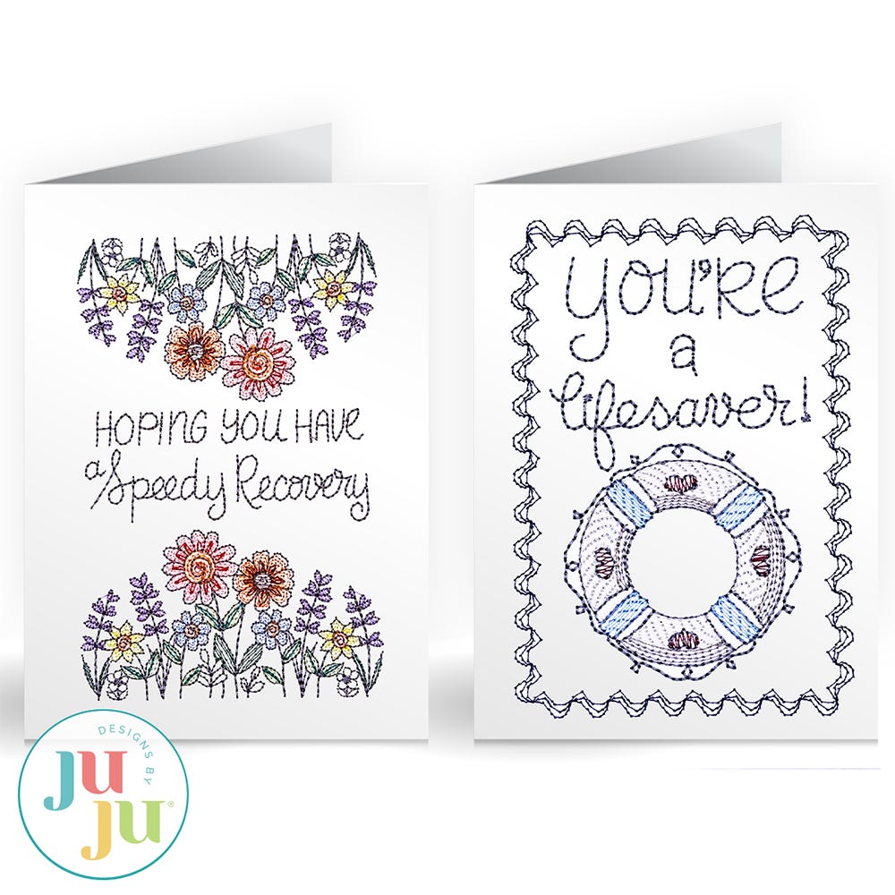 Stitch up some sweet wishes! Sentiments in this set include "Hoping you have a Speedy Recovery" and "You're a lifesaver".Ā 2 sizes of each design included: 4x6 and 5x7
