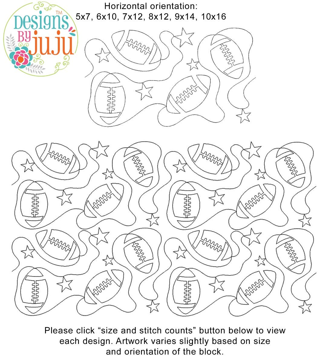 Please note: Both the scale of each pattern and arrangement of the motifs may vary based on the hoop size. Please click the "Size and Stitch Count" button to view the artwork for each size.