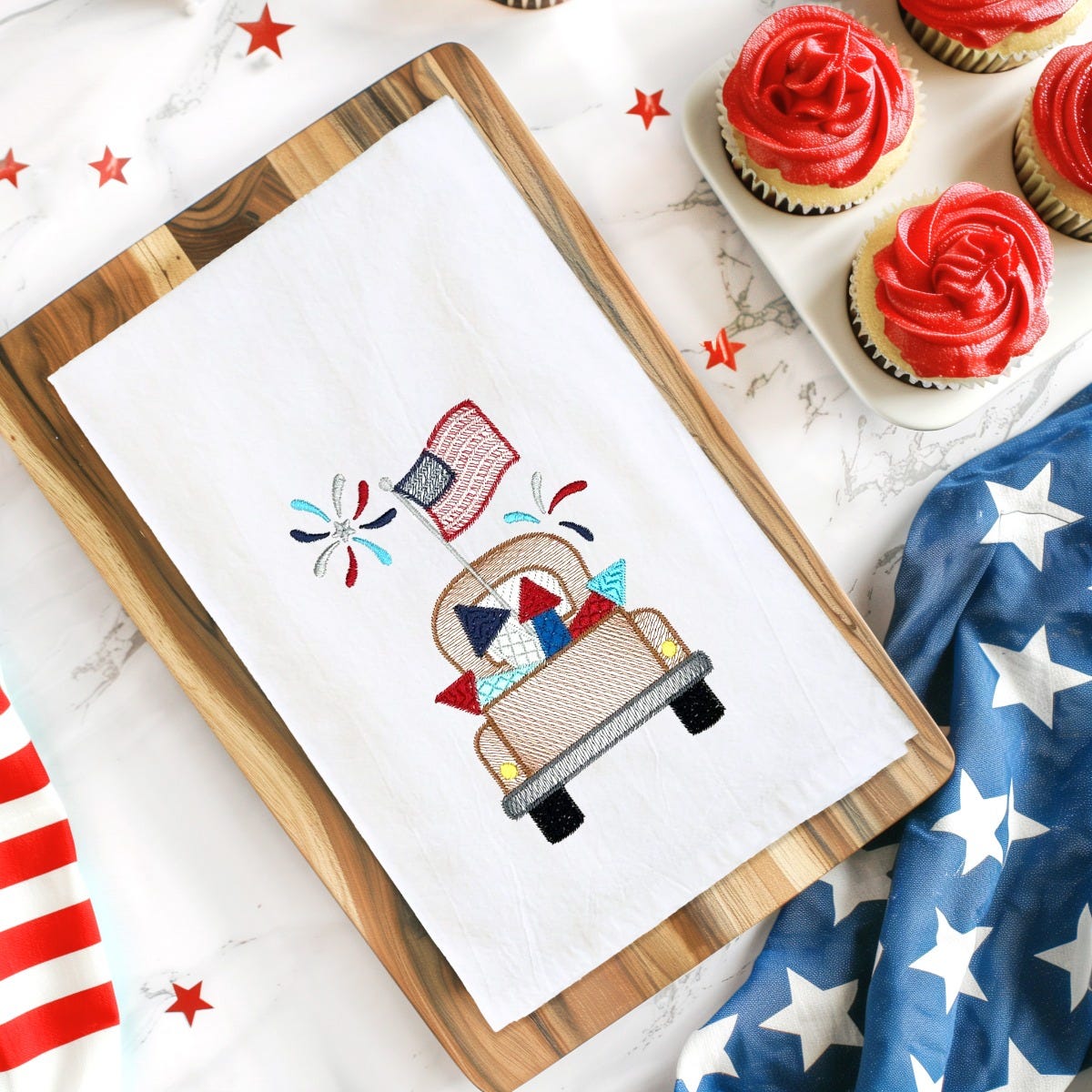 These designs coordinate with our ITH Americana Table Runner, sold separately.