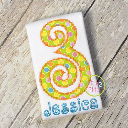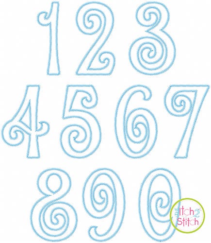 You will receive all numbers 0-9 (10 files) in nine sizes. All numbers in the 3.5" size fit in a 4x4 hoop. Numbers in the 4" - 7" sizes fit in a 5x7 hoop.Ā These numbers have a zig zag stitch finish.Ā Shown with our "Amorette Sketch" font, sold separately.