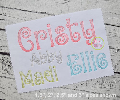 Please note this is not applique, nor is it a traditional satin or fill stitch font. The light and airy "sketch" fill pattern allows for a quick stitch out. The space between each line of stitching varies such that it is more dense at the bottom than the top of each letter to create the shading effect. The letter is finished off with a triple bean stitch outline. We do not recommend resizing this font in software. Small satin stitch sizes are sold separately.