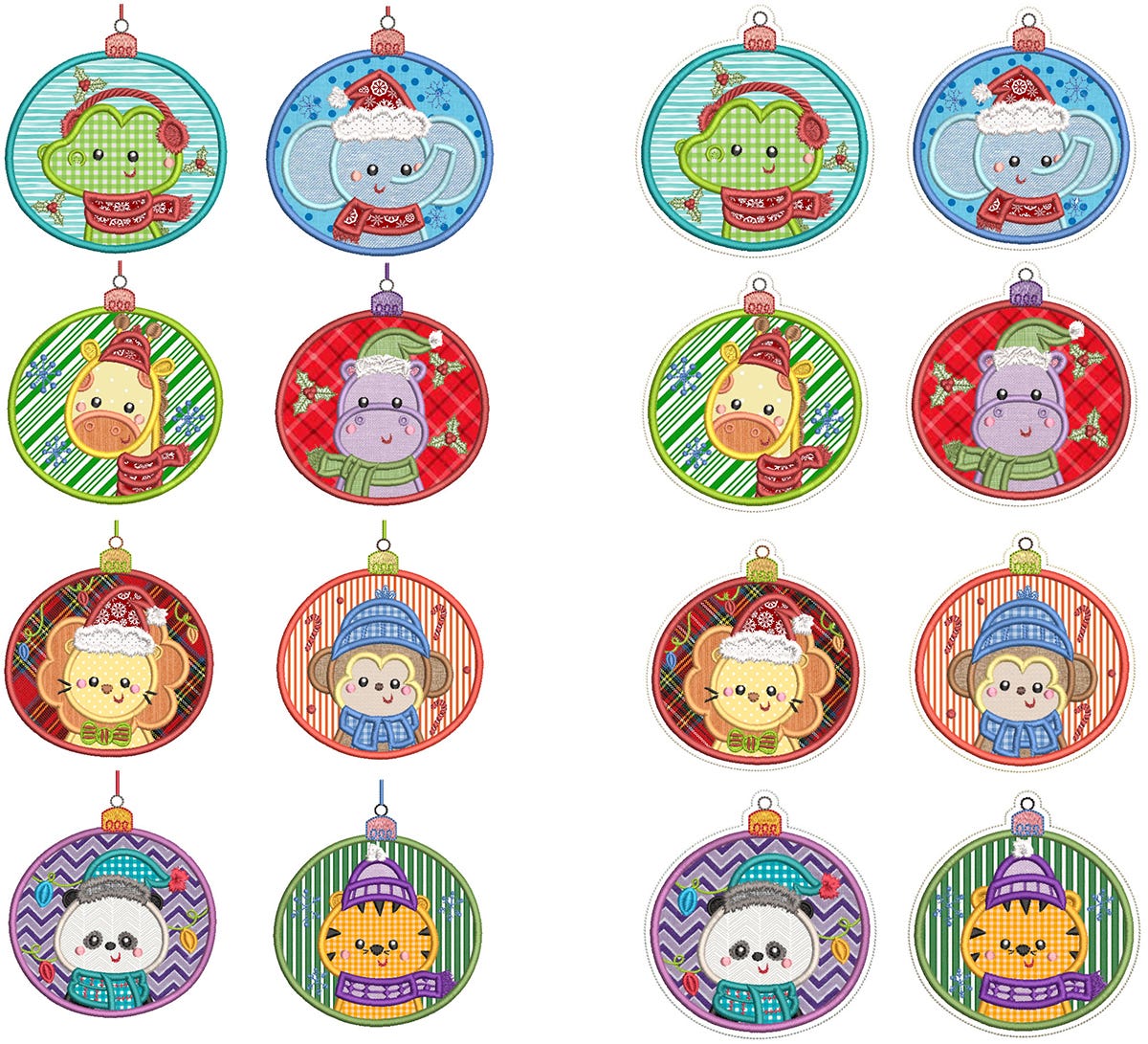 8 beautiful animals on ornaments available in traditional applique and as an ITH project.