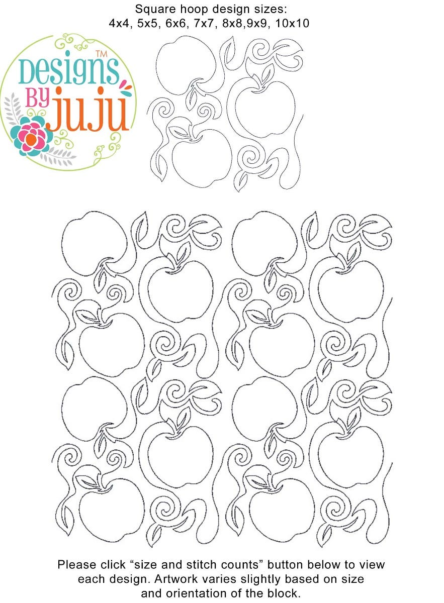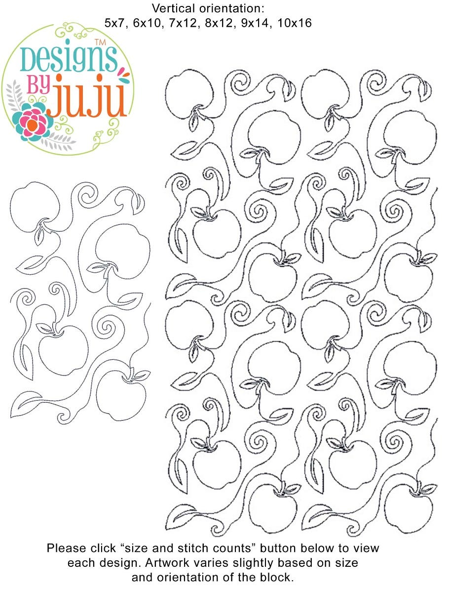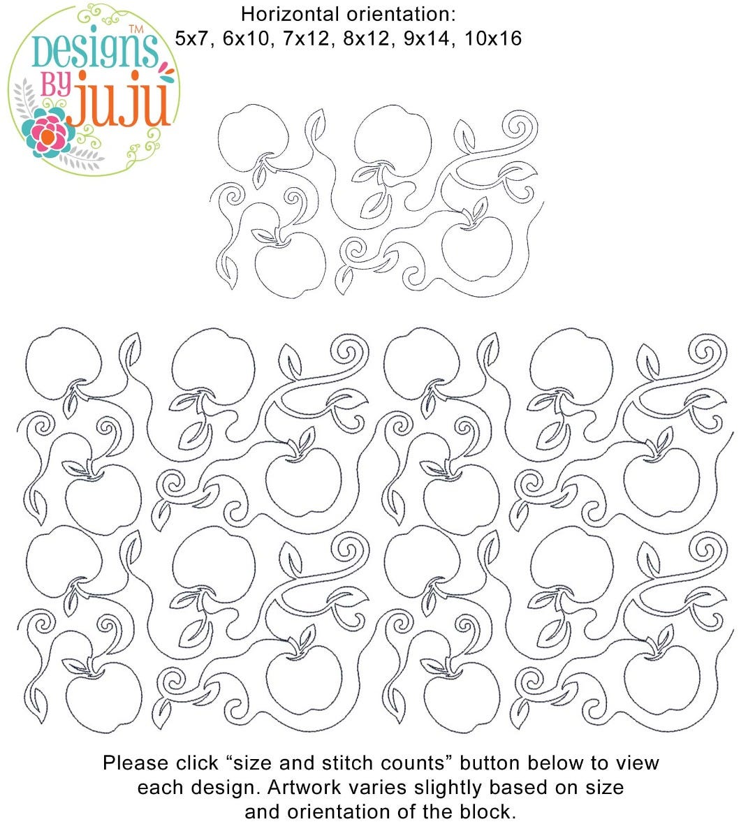 Please note: Both the scale of each pattern and arrangement of the motifs may vary based on the hoop size. Please click the "Size and Stitch Count" button to view the artwork for each size.