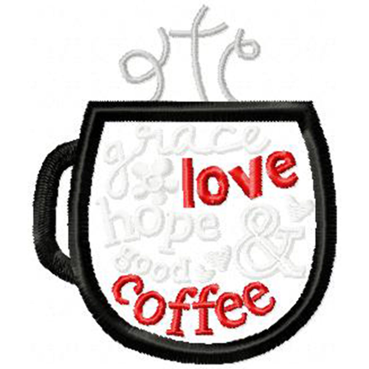 This grace tea applique cup designs matches the cup on our Grace Tea Mug Rug. Place on towels, potholders,aprons, or other kitchen related items of your choice.