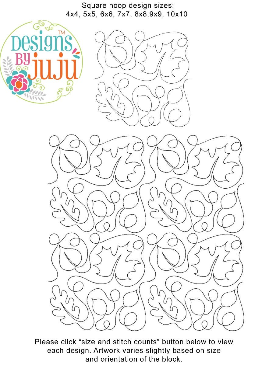Please note: Both the scale of each pattern and arrangement of the motifs may vary based on the hoop size. Please click the "Size and Stitch Count" button to view the artwork for each size.