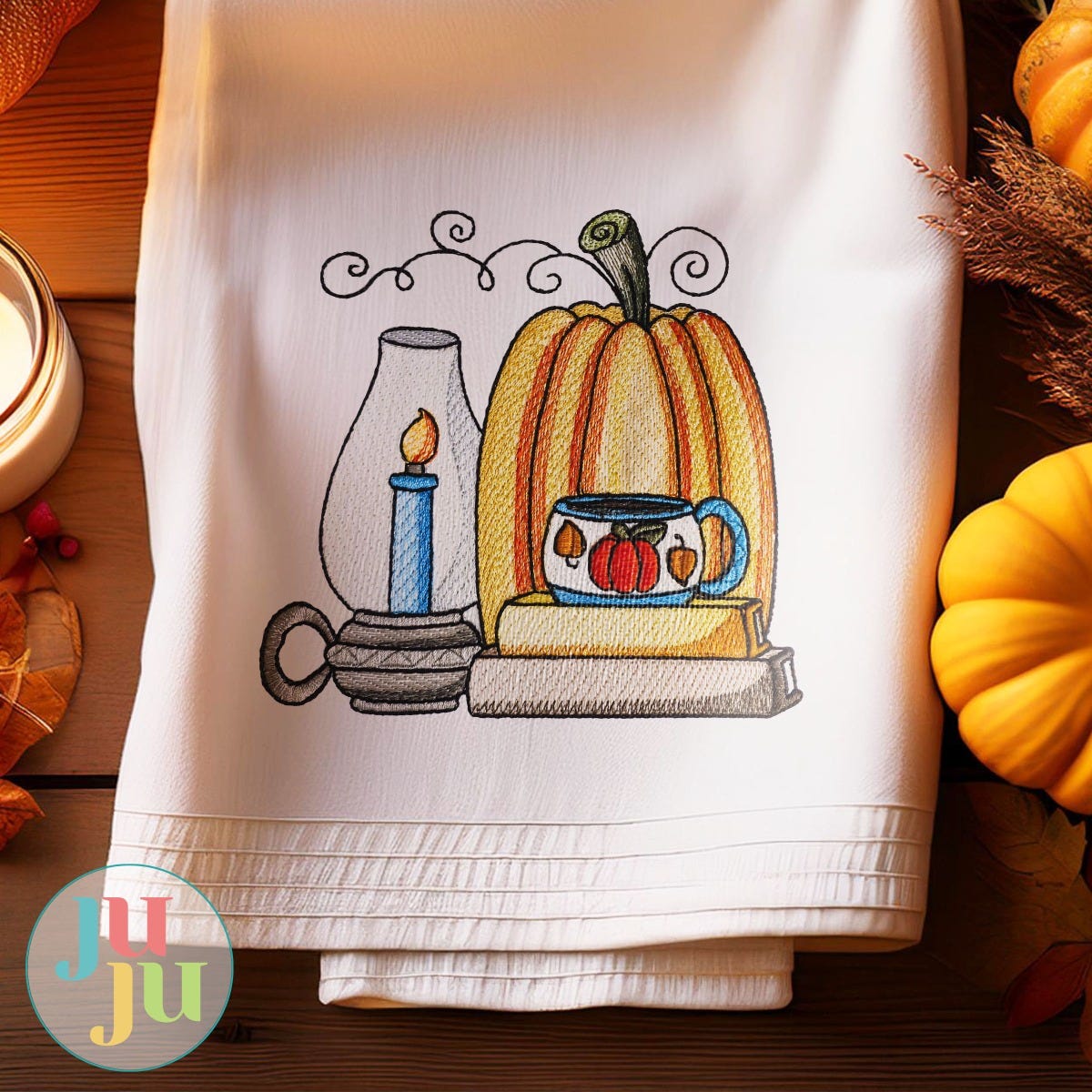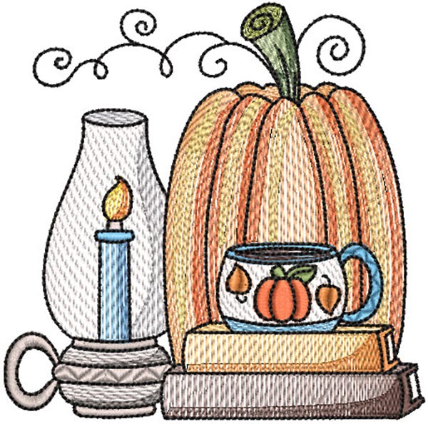 Cozy up for an autumn evening at home, reading and sipping a pumpkin latte by candlelight! This single design features multiple color layers of lighter density fill to create a blended, variegated, textured look. Four sizes included (4x4, 5x7, 6x10 and 8x8).