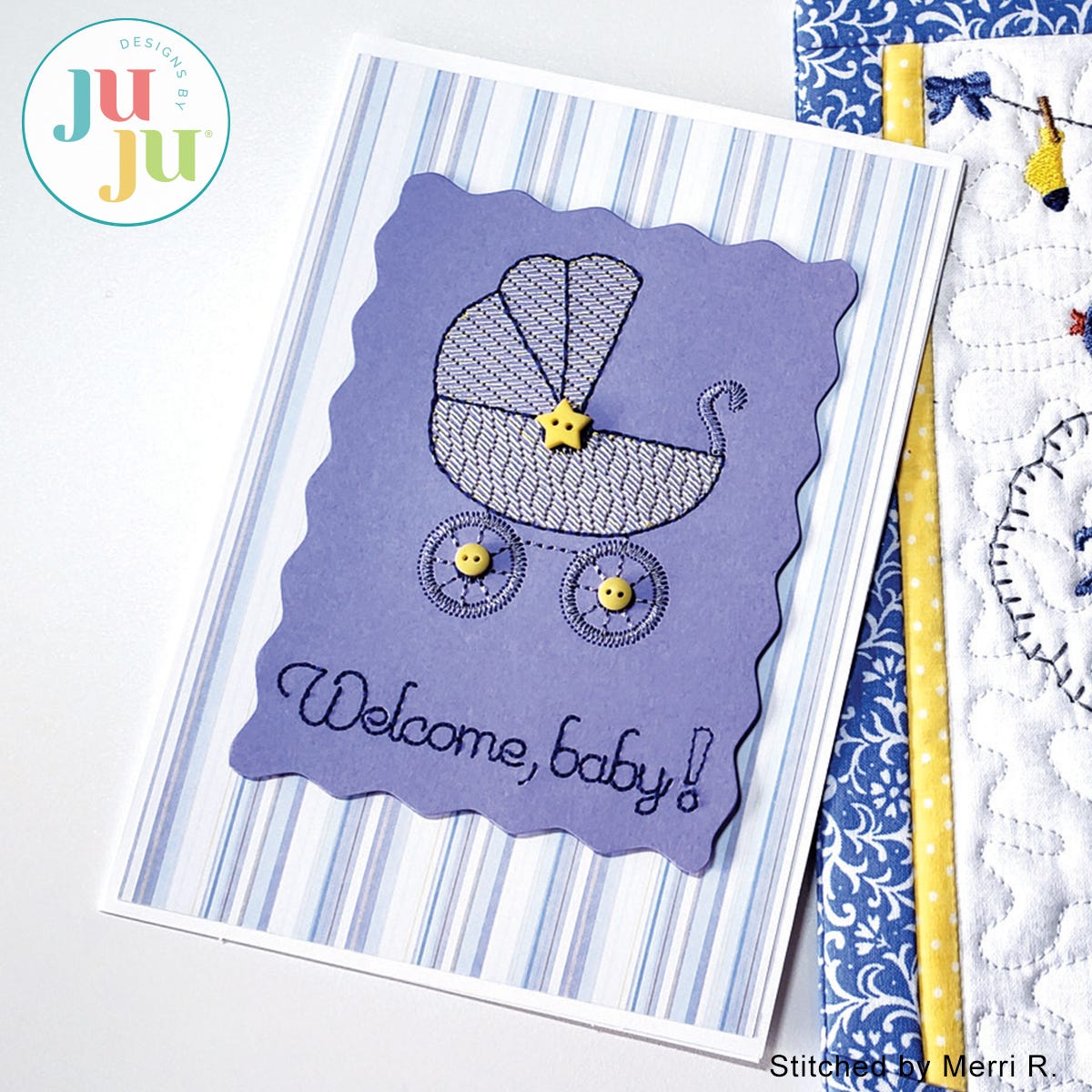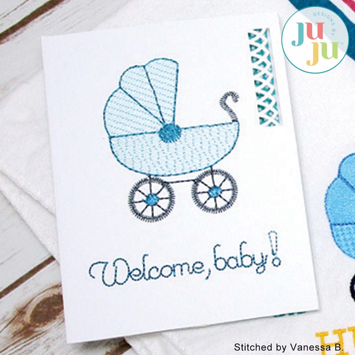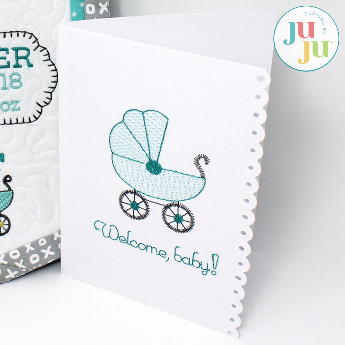 Also included is a design digitized for cotton fabrics, like bibs and burp pads. This way you can coordinate your card with your gift.