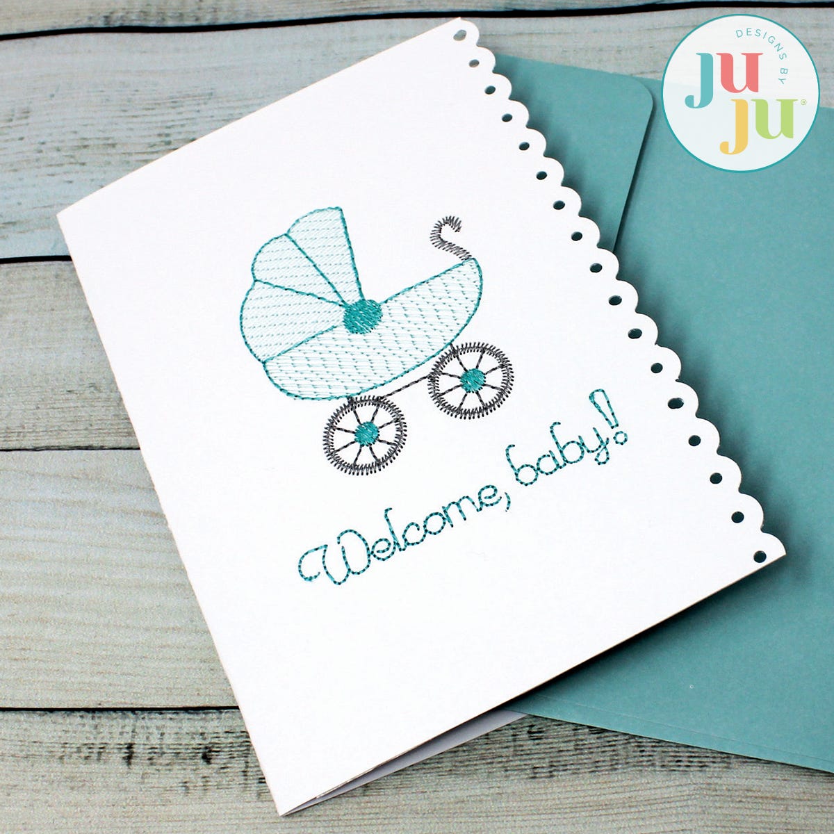 This baby card was digitized to be stitched on cardstock or blank cards.