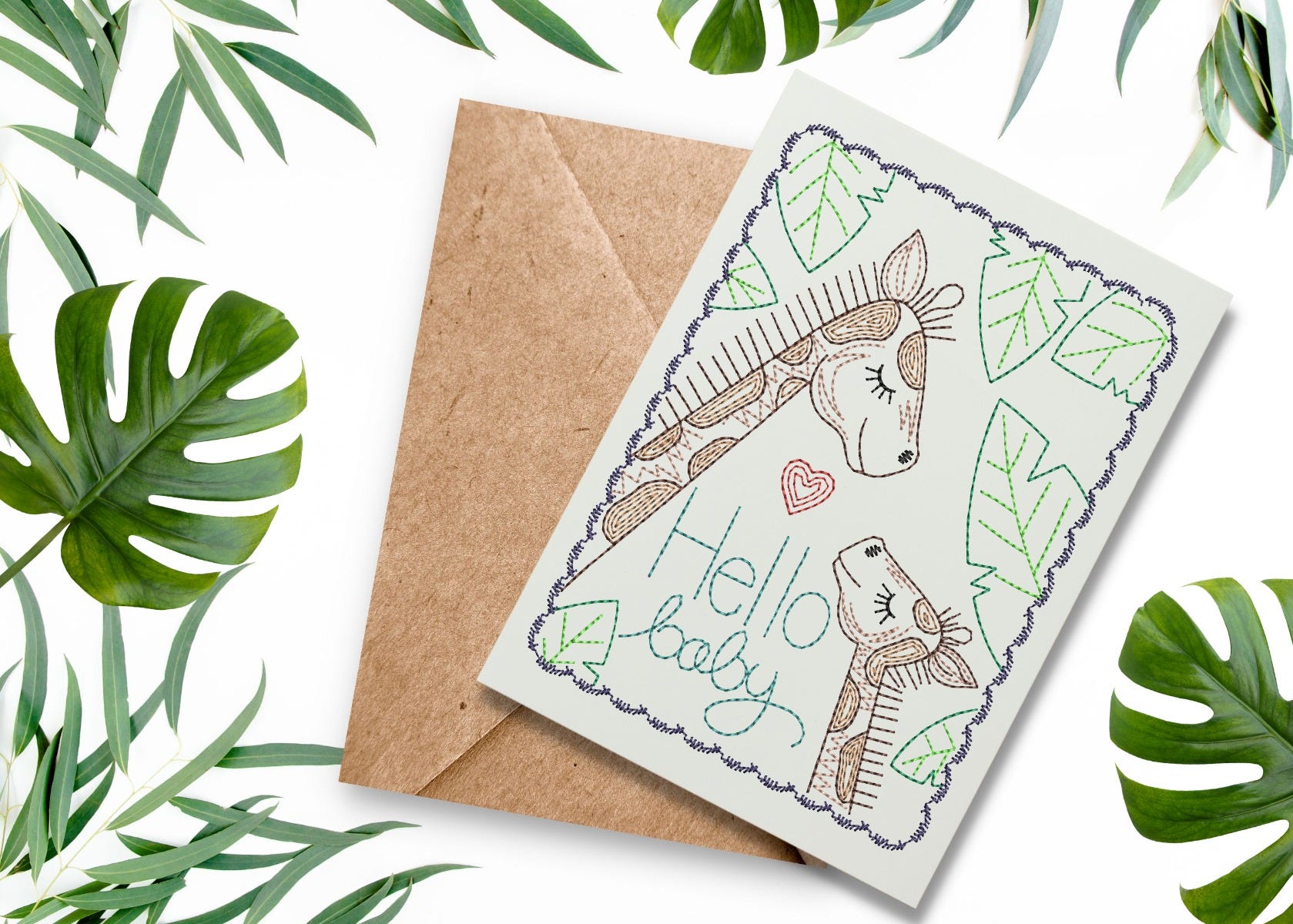 2 adorable embroidered greeting cards to welcome a new baby! 2 sizes included: 4x6 and 5x7