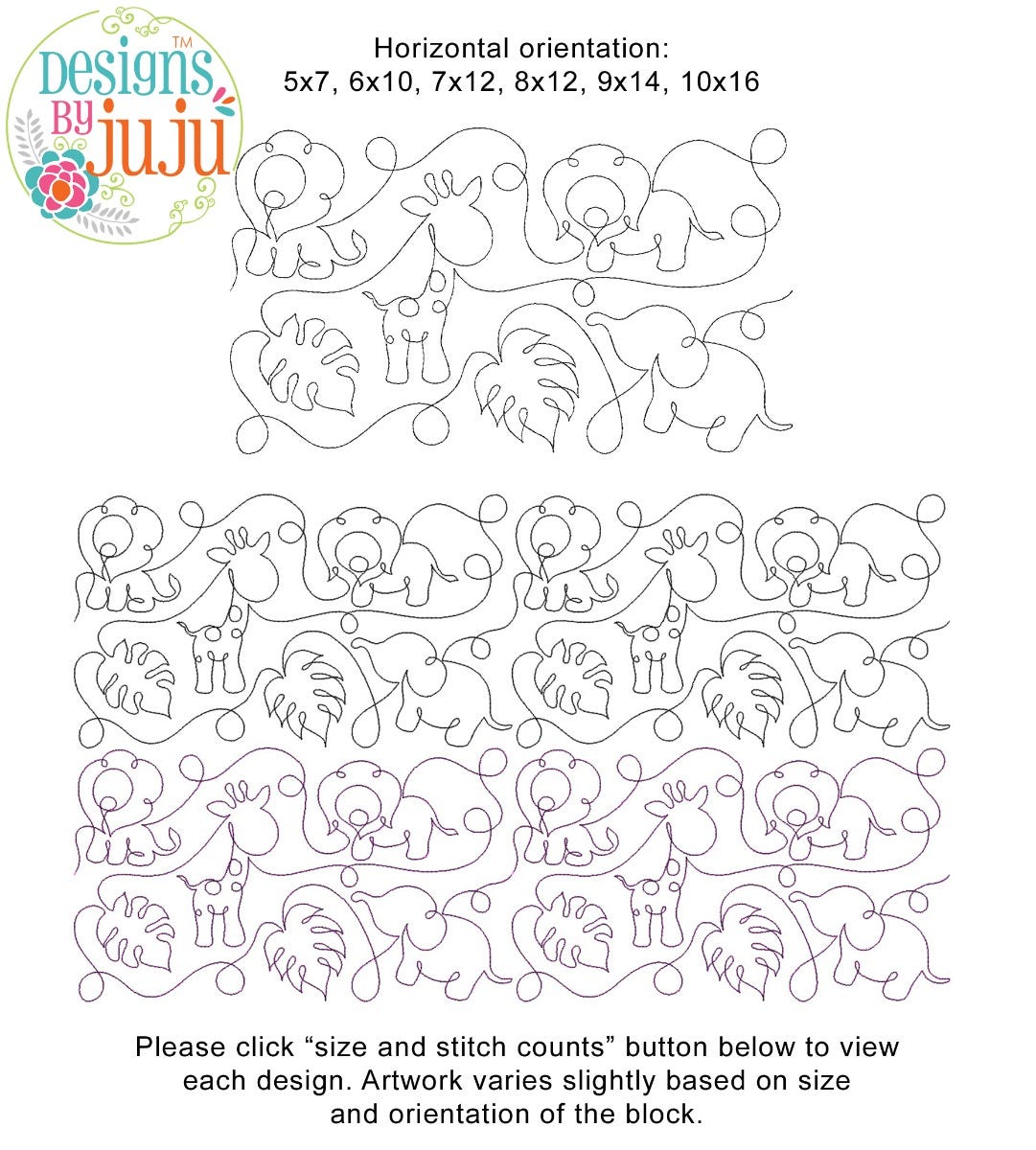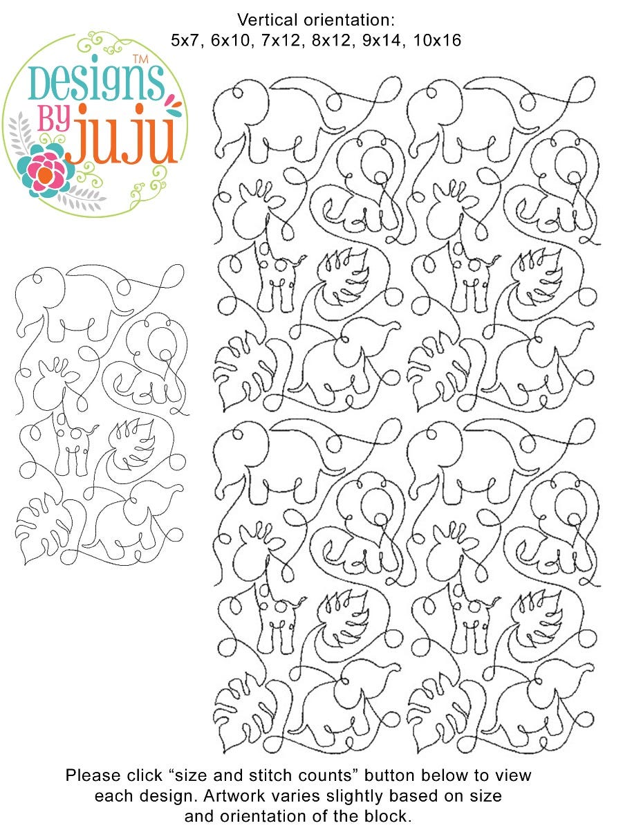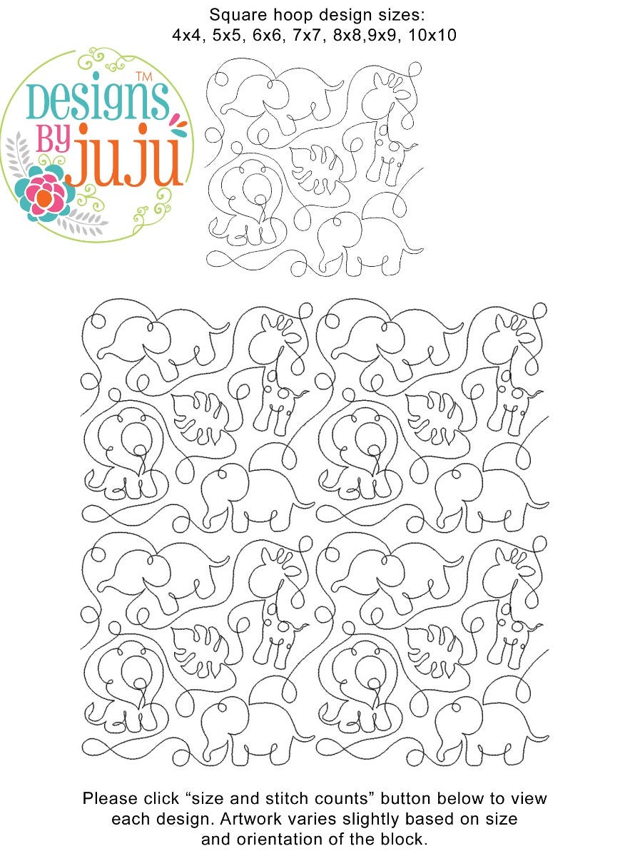 Please note: Both the scale of each pattern and arrangement of the motifs may vary based on the hoop size. Please click the "Size and Stitch Count" button to view the artwork for each size.