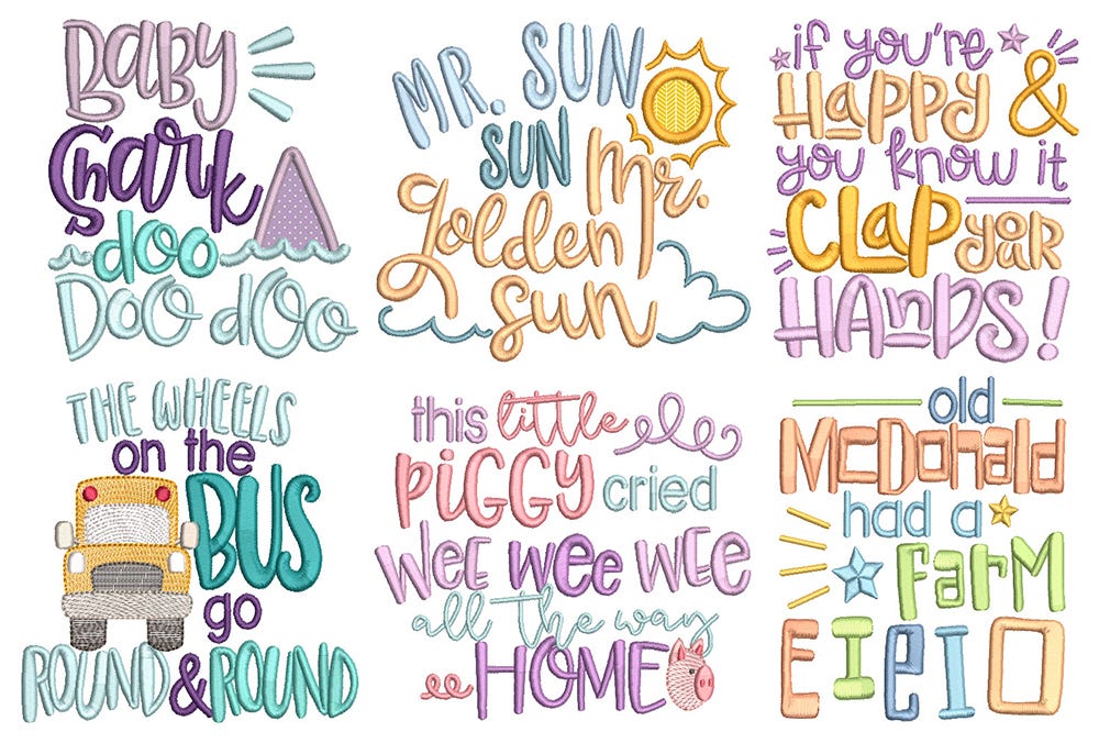 6 sweet word art designs inspired by popular baby songs!Ā