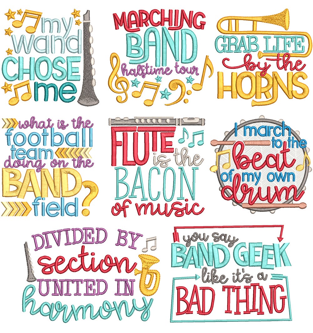 8 band themed word art designs.