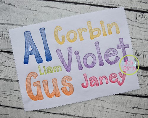 Please note this is not applique, nor is it a traditional satin or fill stitch font. The light and airy "sketch" fill pattern allows for a quick stitch out. The space between each line of stitching varies such that it is more dense at the bottom than the top of each letter to create the shading effect. The letter is finished off with a triple bean stitch outline. We do not recommend resizing this font in software. Small satin stitch sizes are sold separately.