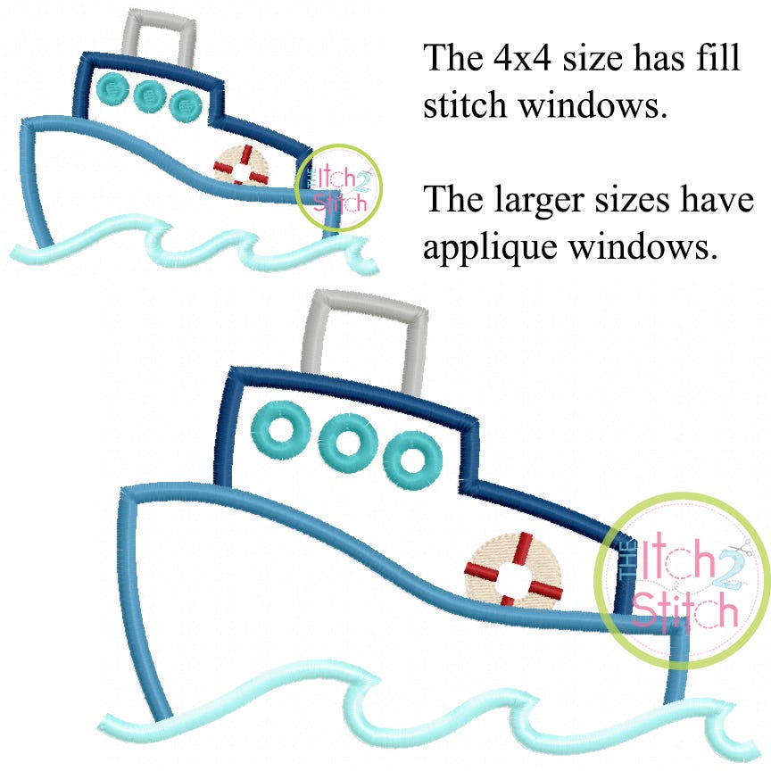 Please note the 4x4 size has fill stitch windows