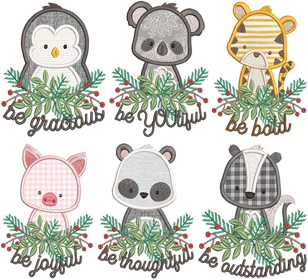 6 MORE adorable and sweet ābe kindā critters in applique!