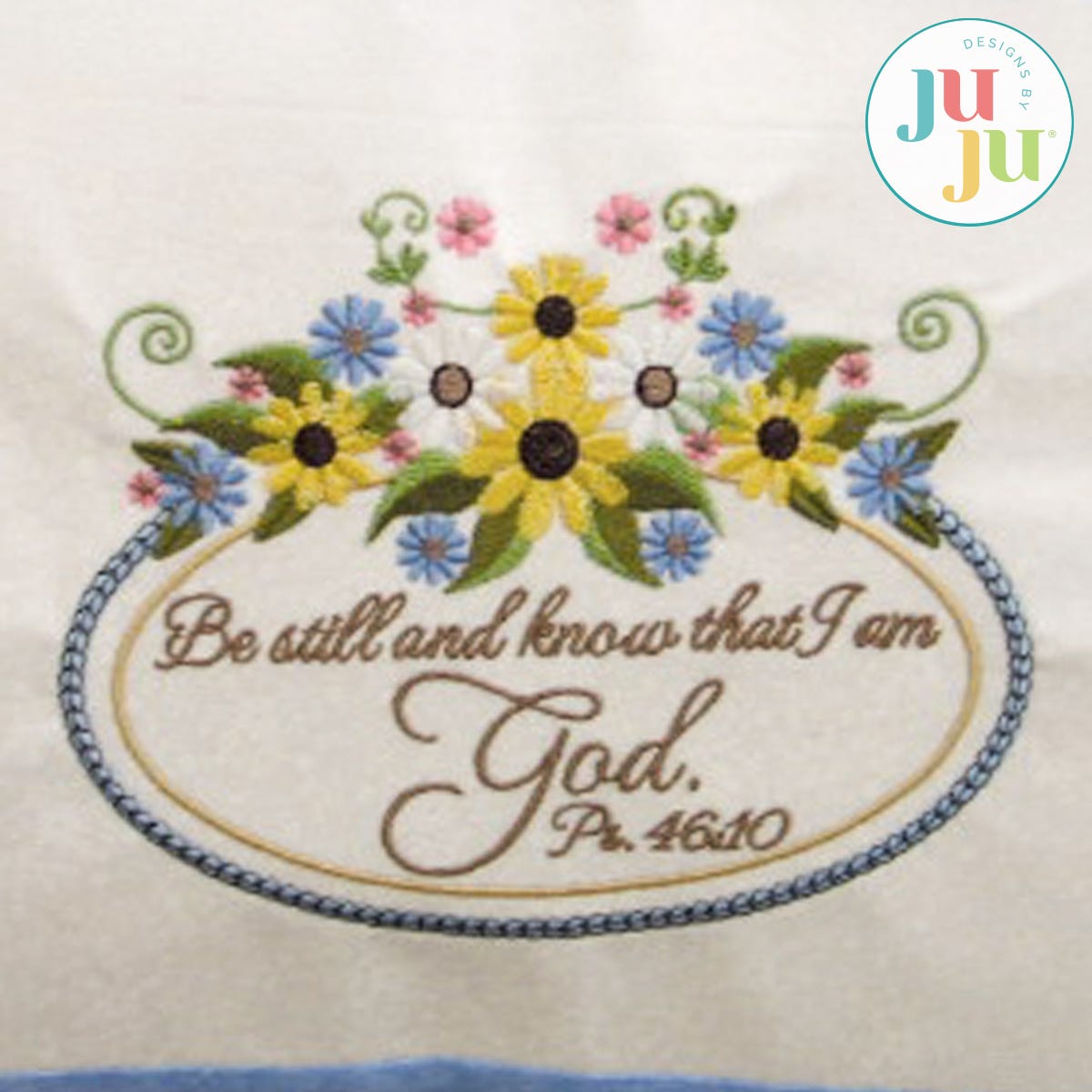 This scripture is a reminder of Who is in charge of our lives and Universe. Place it in the center of wallhangings, pillows, bedrunners, or frame it as a daily reminder. This is NOT an applique design. Included with your purchase is also a flower frame without the wording for you to insert your own text, such as a familys name.