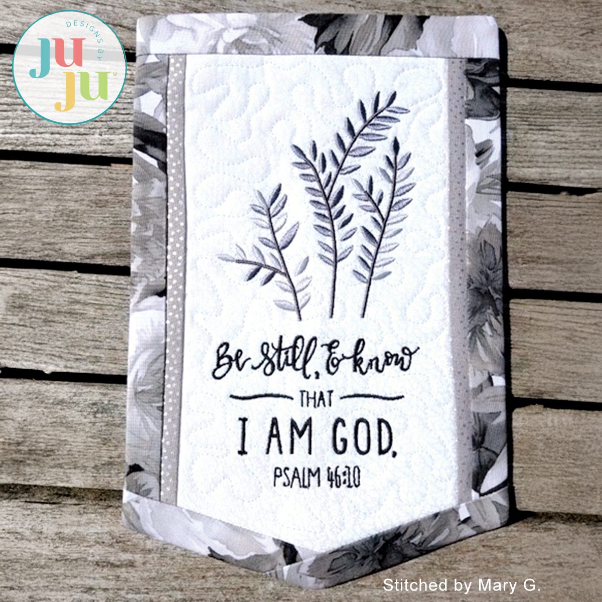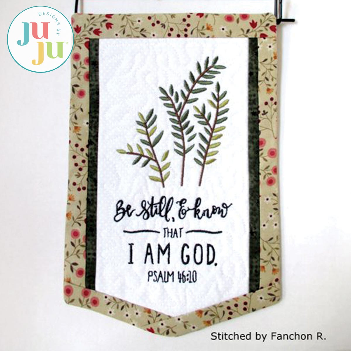 Decorate your home with this inspirational banner. Not only is it beautiful but can also serve as a constant reminder that even in times of chaos God is still in control. The design's background is stipple quilted in the hoop and the various border strips are applied during the in the hoop process. There is a "sleeve" in the back for hanging the quilt. The sleeve is applied during the embroidery.