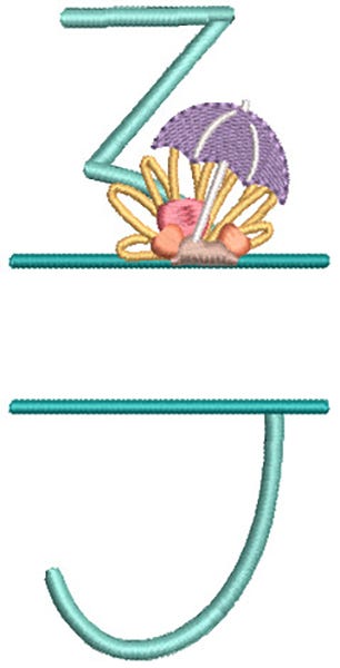 Our Beach Split Numbers feature a decorative satin stitch number with embroidered beach-themed elements. Designed to be personalized with the font of your choice in embroidery editing software.