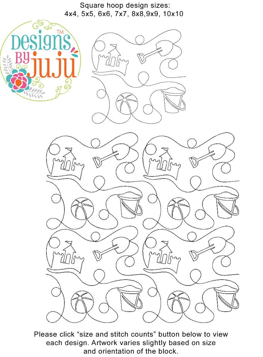 Please note: Both the scale of each pattern and arrangement of the motifs may vary based on the hoop size. Please click the "Size and Stitch Count" button to view the artwork for each size.