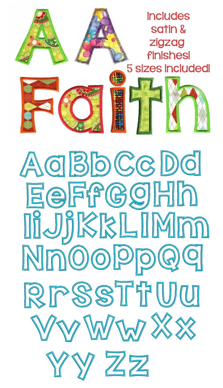 Satin and Zigzag finish included for all sizes. Upper and lowercase included!!