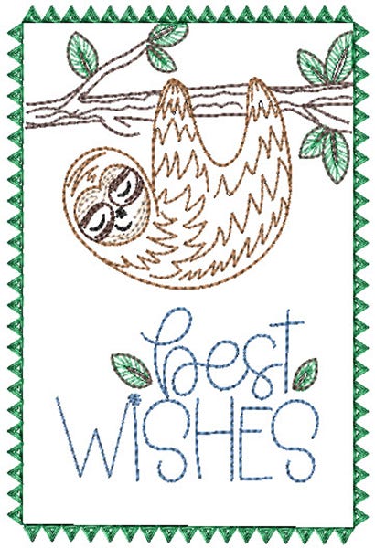 5x7 will fit on a 5x7 card with approximately 1/4-1/2 inch margin all the way around. I like to stitch my design onto Watercolor Paper, and then trim it out and mount it onto a contrasting colored cardstock.