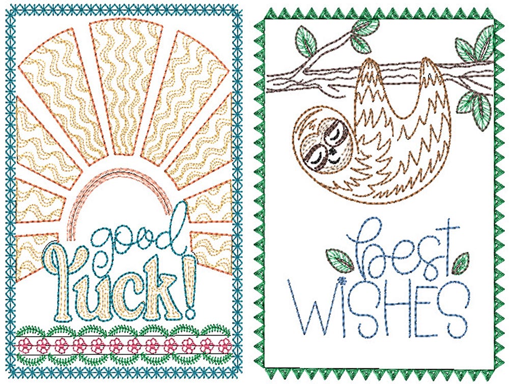 Stitching embroidery onto cardstock is fun and easy! We include a PDF in your download with some tips and tricks on embroidery onto cardstock.