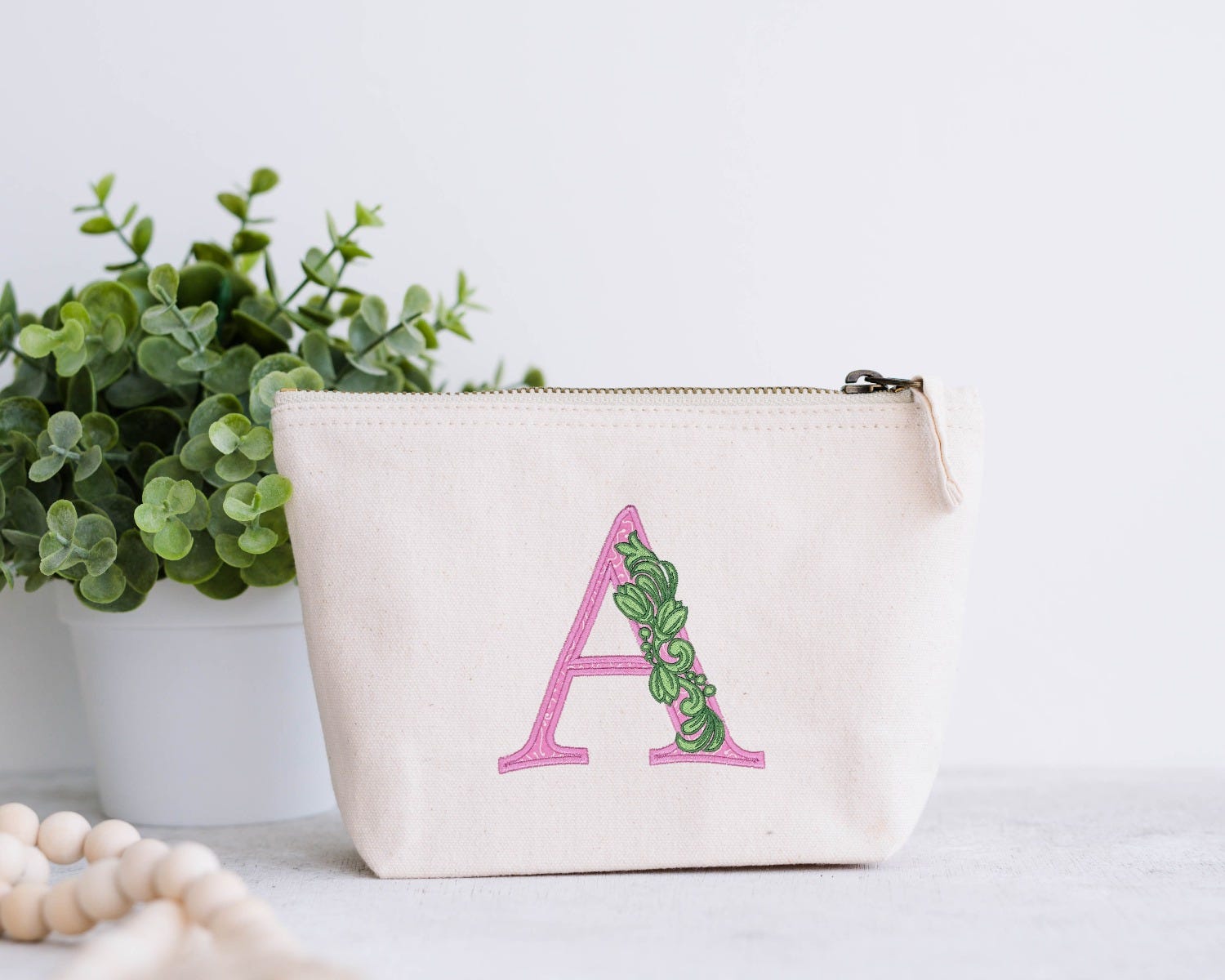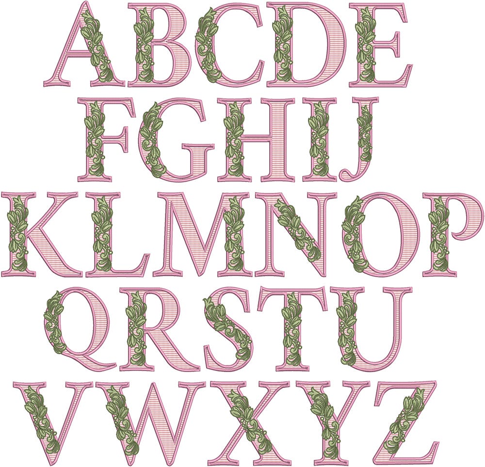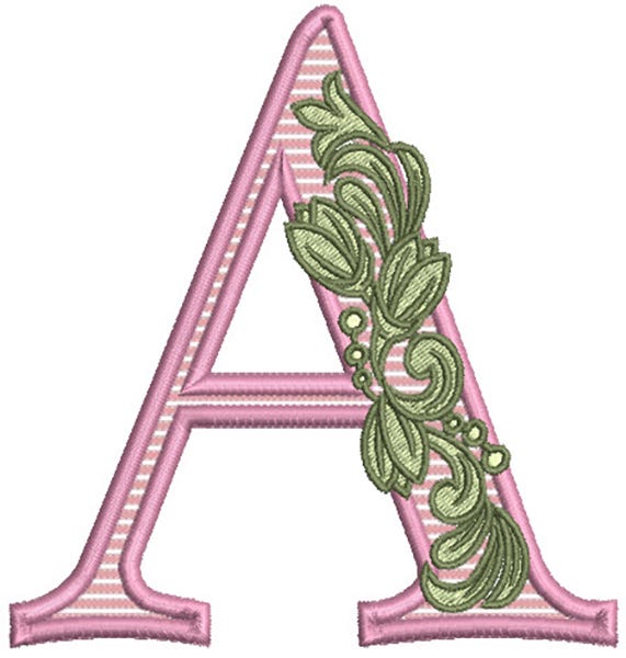 Our Bethany Monogram features embroidered greenery atop an applique letter. To maximize stitch efficiency, overlapped stitches have been removed, therefore the greenery cannot be skipped.