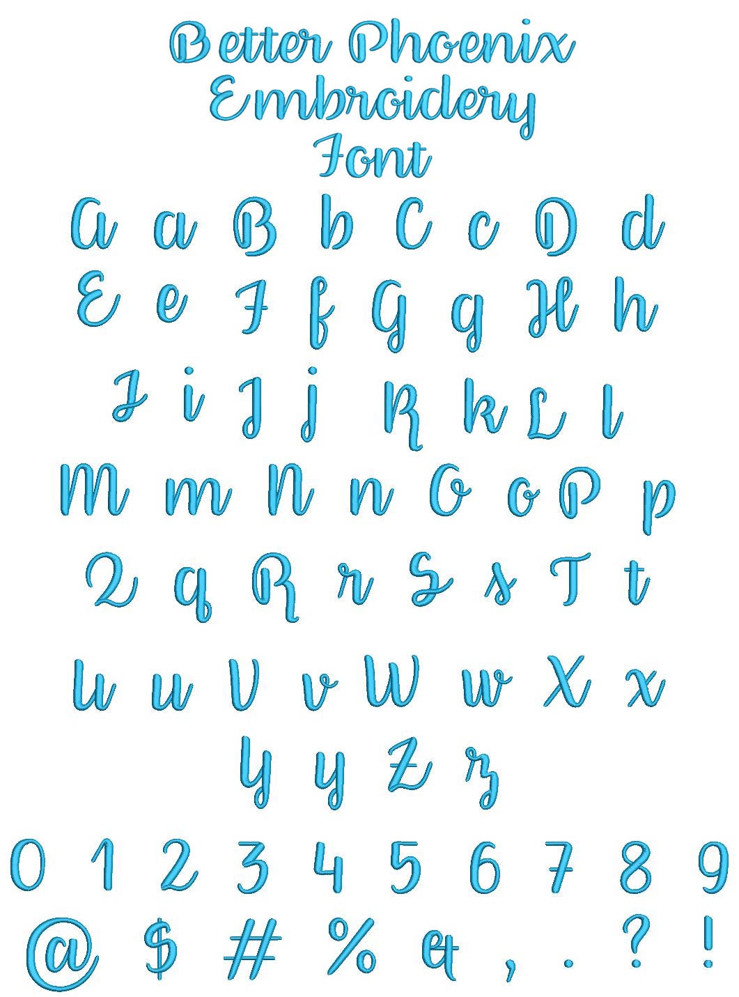 All of our font alphabets are 100% manually digitized to bring you maximum stitch quality.