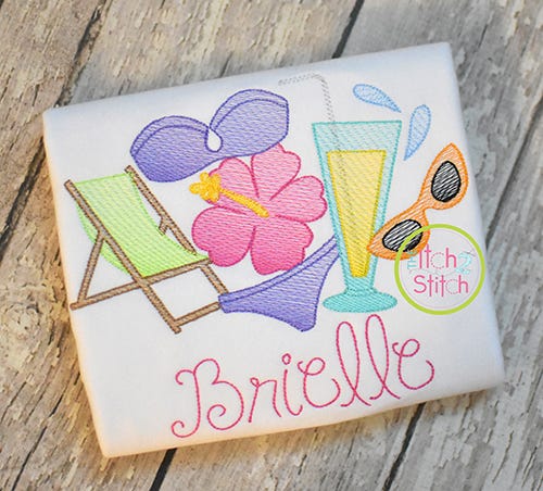 Please note this is not applique, nor is it a traditional fill stitch design. The light and airy "sketch" fill pattern allows for a quick stitch out. The space between each line of stitching varies such that it is more dense in one part of an object than another to create the shading effect. Each object is finished off with a triple bean stitch outline. We do not recommend resizing this design in software.