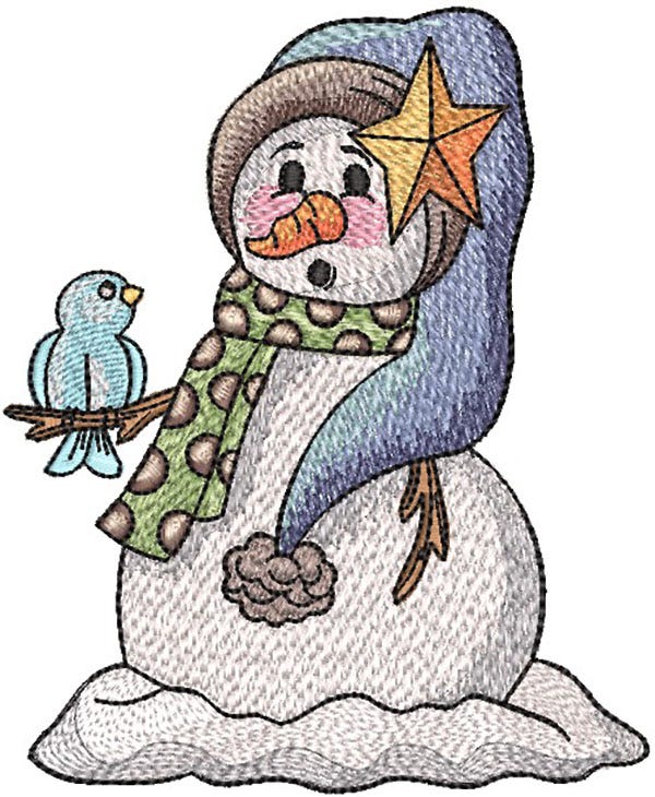 One adorable whimsical snowman design for you! This single design features multiple color layers of lighter density fill to create a blended, variegated, textured look.