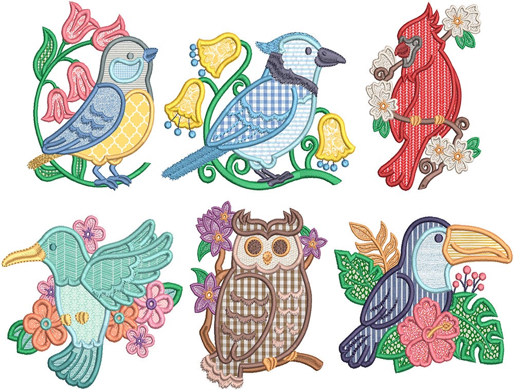 6 beautiful bird applique designs!