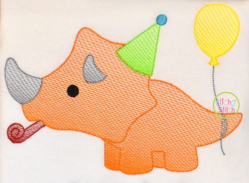 Please note this is not applique, nor is it a traditional fill stitch design. The light and airy "sketch" fill pattern allows for a quick stitch out. The space between each line of stitching varies such that it is more dense at the bottom than the top of each object to create the shading effect. Each object is finished off with a triple bean stitch outline. We do not recommend resizing this design in software.