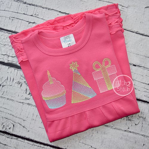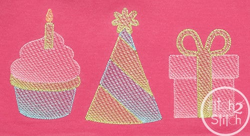 Please note this is not applique, nor is it a traditional fill stitch design. The light and airy "sketch" fill pattern allows for a quick stitch out. The space between each line of stitching varies such that it is more dense at one side of the object than the other to create the shading effect. Each object is finished off with a triple bean stitch outline. We do not recommend resizing this design in software.