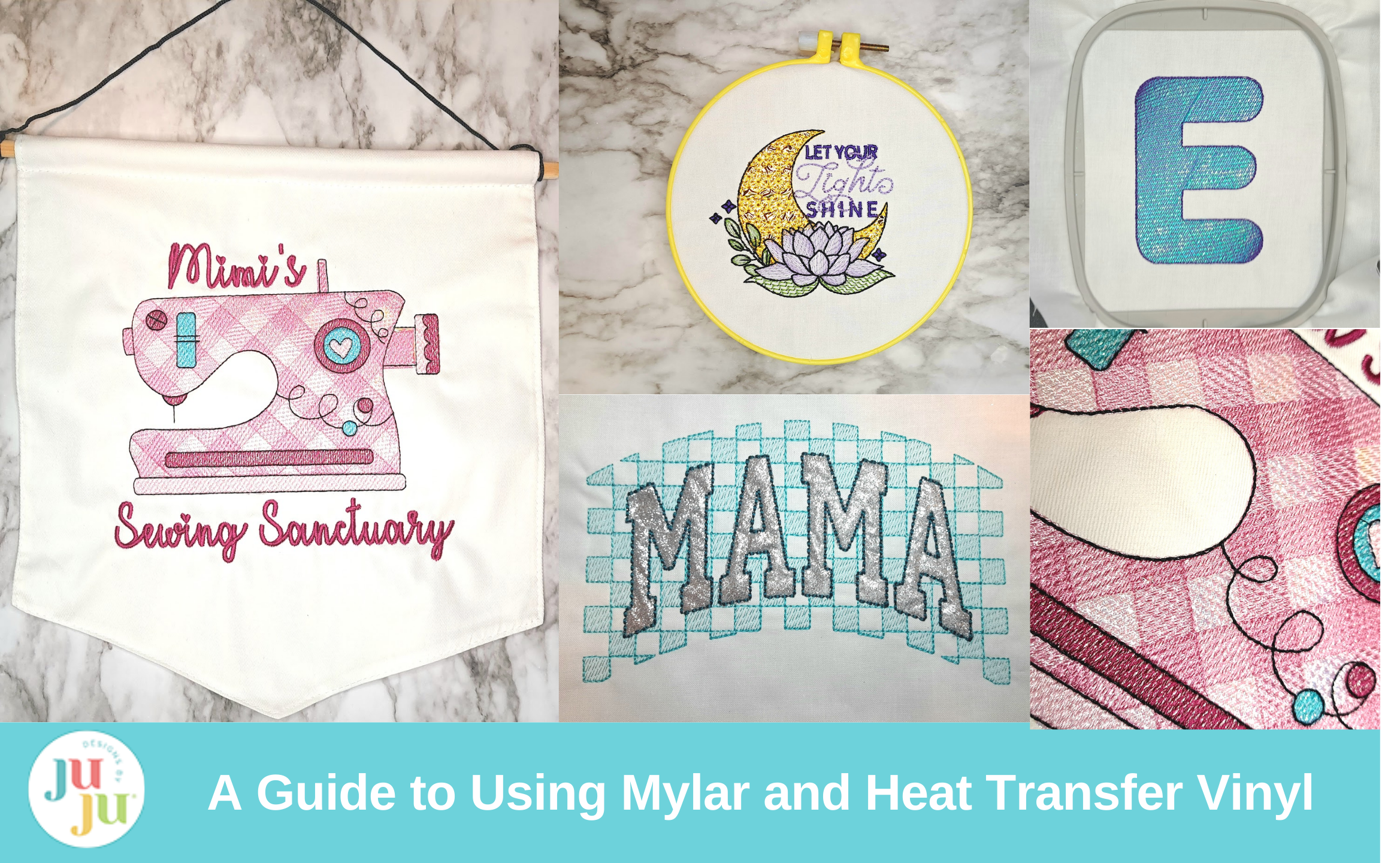 Add instant sparkle to your embroidery with this guide to using Mylar and heat-transfer vinyl (HTV). Learn what these specialty materials are, which designs they work best with, and step-by-step tips for adding shimmer, shine, and texture to your projects. Whether you want a subtle glint or bold glitter, this tutorial shows you how to elevate your embroidery with eye-catching results.