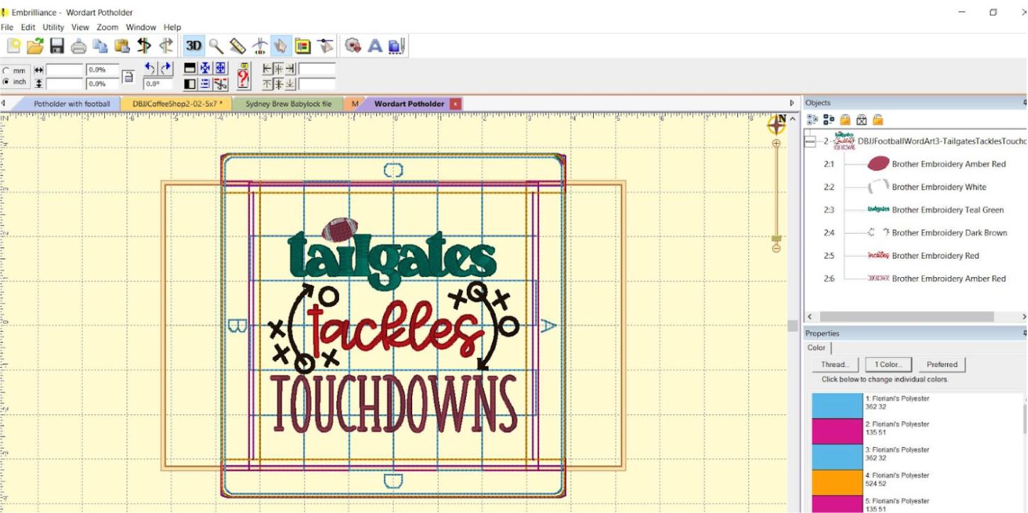 I open the potholder design first and then add the second design because my machine will put them in this order for sewing.
