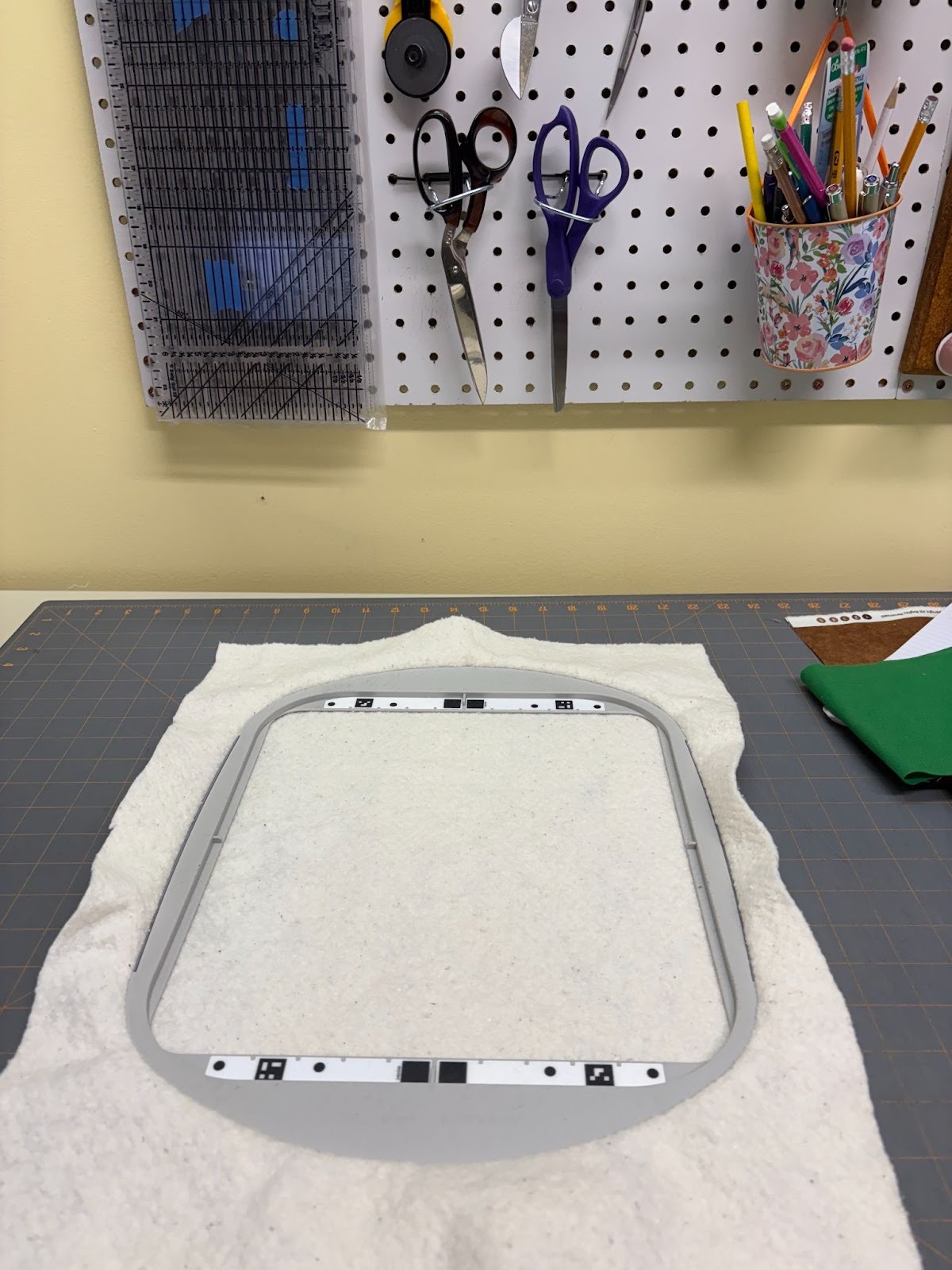 This was my very first time trying an end-to-end quilting design. If you haven’t used one yet, this is the perfect time to try it because you’re only doing a small project. I watched Becky’s video on end-to end quilting a few times. I have a single-needle machine and only the hoops that came with it.