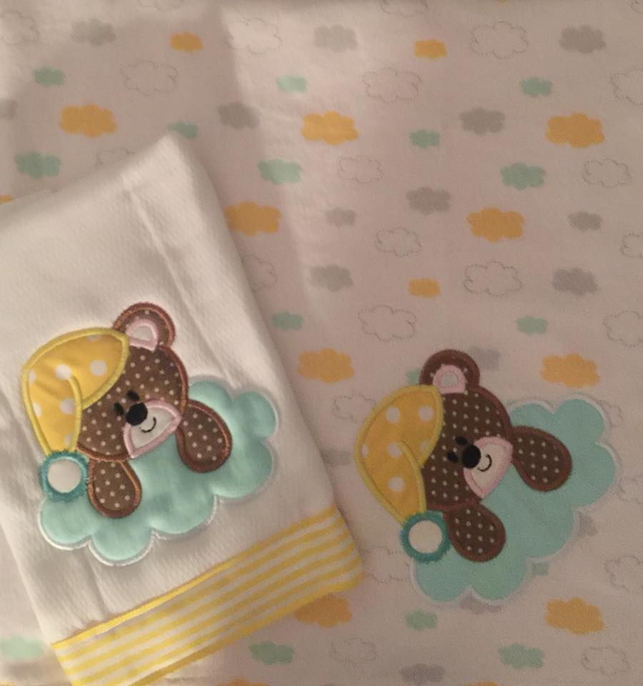 We love this burp cloth and blanket duo that Pam made using our Sleepy Time Critters set! Who else loves the colors she chose? And how CUTE are those polka dots on the bear?? Great job, Pam! ?
