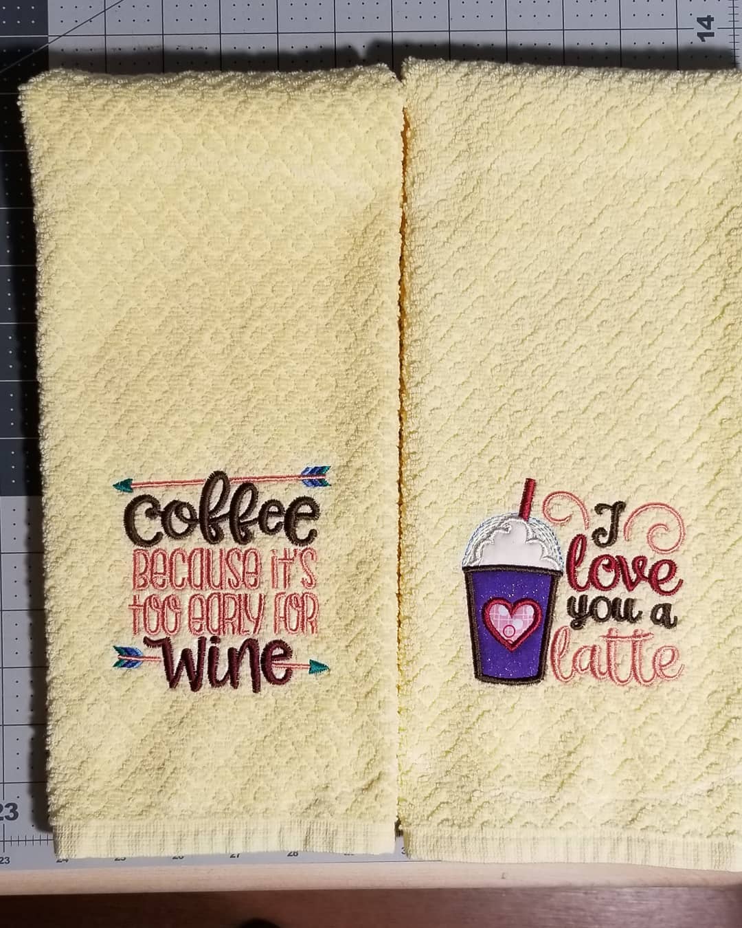 Calling all coffee lovers... You are going to love these customer projects using our Coffee Word Art Sets 1 and 2! These adorable sets are perfect for customizing just about anything. From quilts to towels, the possibilities are endless! Happy Stitching, Coffee Lovers :)