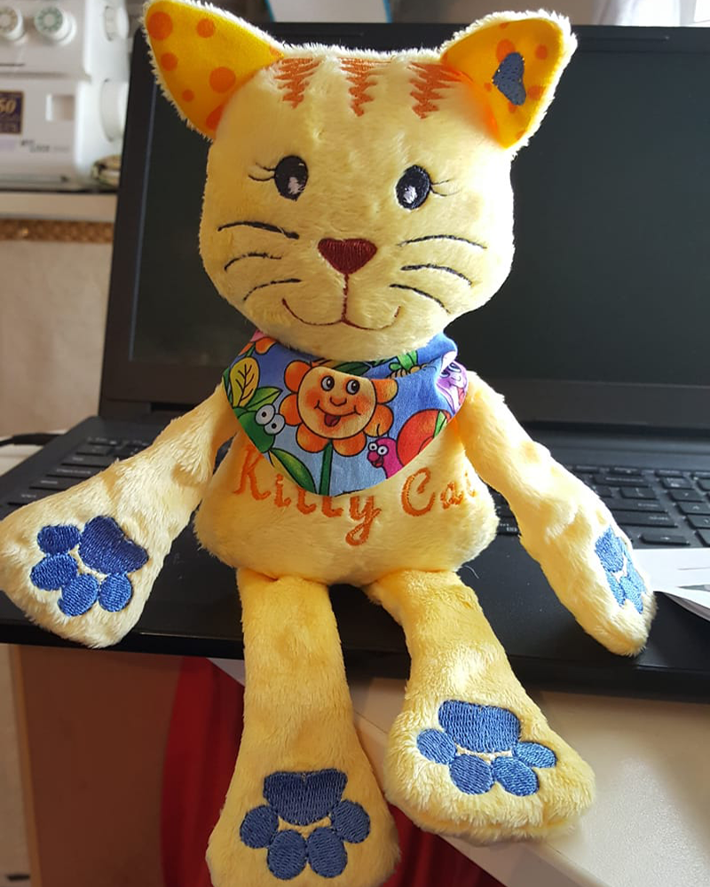 We can't get enough of this adorable kitty that Trish made! When we saw this photo, we instantly fell in love with the colors she chose for her cat's fur and paws. She used our Cute Cat Softie In The Hoop design to complete this cute project. What little kid wouldn't love to have a stuffed kitty like this to carry around the house with them?? Too cute!