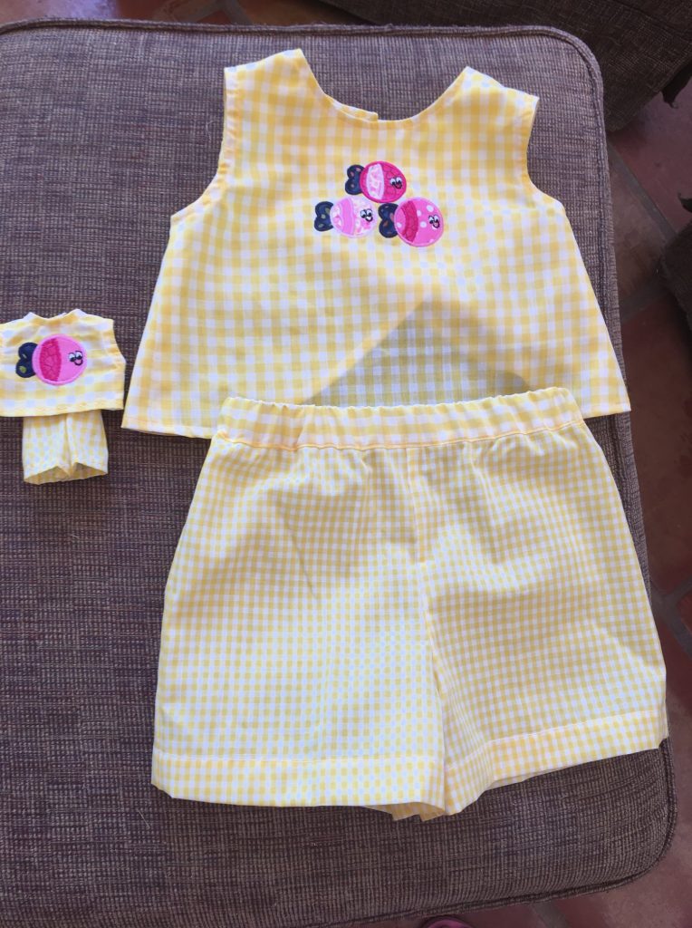 How adorable are these matching outfits that Pam made for her youngest granddaughter and her little Barbie doll?? She said that her granddaughter LOVES when her clothes match with her Barbie doll and we're sure she's having a TON of fun matching her Barbie doll this summer! Pam used our Simply Sweet Fishies Applique to add the perfect accent to these matching outfits. Great job, Pam! ?