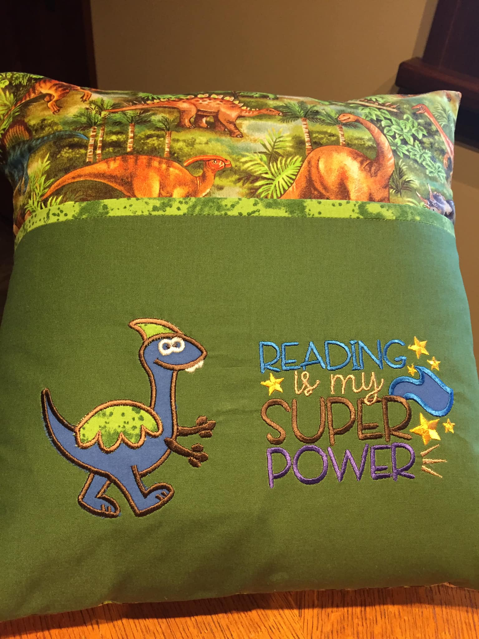 How fun is this dinosaur-themed reading pillow? Sheila used our