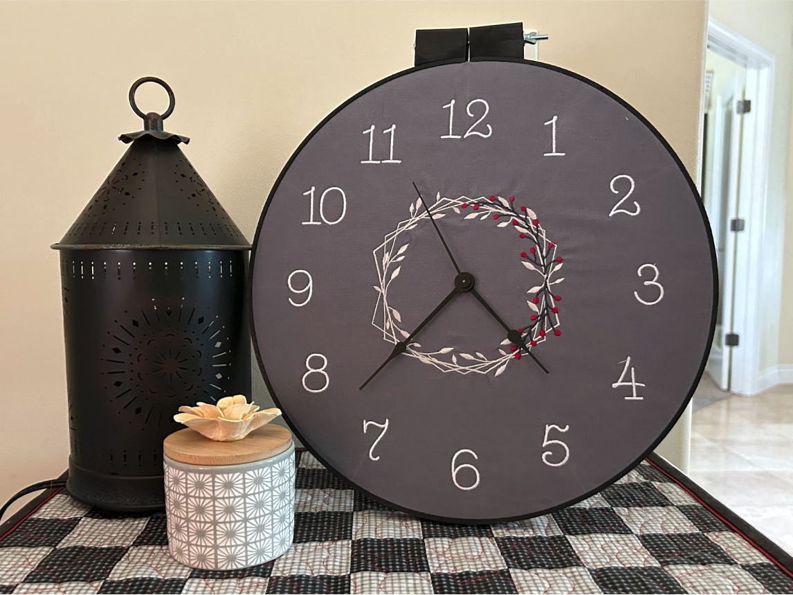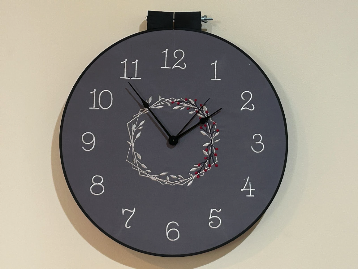 I hope you try making a clock that fits your space perfectly. You can make them as big or as small as you’d like. Join us in the Designs by JuJu Embroidery Blessings Facebook Group where we can see your project, or use the hashtag #designsbyjuju anywhere on social media! We love everything you share with us!