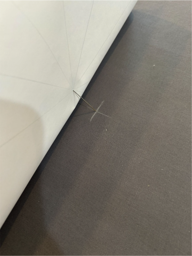 . . . and then using that same pin, I placed it on the center point of the fabric.